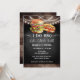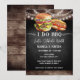 Convites de Encontro do Casal de Noivos Eu Amo Churrasco. Fácil de personalizar. Todo o texto é ajustável e fácil de alterar para as necessidades da sua festa. Elementos rústicos de fundo com luzes de corda. Redemoinhos e floreios divertidos em quadro-negro. Gráficos de hambúrguer e cachorro-quente em aquarela. Design de festa de churrasco no bar ou quintal. Qualquer idade, basta alterar o texto.