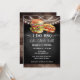 Convites de Engajamento de Casal de Churrasco. Fácil de personalizar. Todo o texto é ajustável e fácil de alterar para as necessidades da sua festa. Elementos de fundo rústico com luzes de corda. Redemoinhos e floreios divertidos de quadro-negro. Gráficos de hambúrguer e cachorro-quente em aquarela. Design de festa de churrasco no bar ou quintal. Qualquer idade, basta alterar o texto.