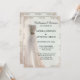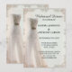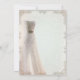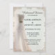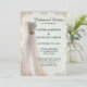 Um convite de ensaio de casamento branco elegante com vestido de noiva e borda ornamentada. Este convite faz parte de um conjunto.