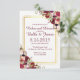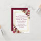Convite elegante e moderno apresenta tons exuberantes de vermelho, borgonha, floral rosa e folhagem, moldura de borda em folha de ouro falso adiciona um toque extra. Clique para personalizar ainda mais para alterar o estilo da fonte ou adicionar mais texto para atender às suas necessidades.