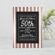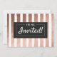 Convite de aniversário de casamento com design geométrico preto e dourado rosa moderno com texto personalizável. Caixa de texto você está convidado no estilo tendência de ouro rosa.
