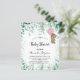Para um chá de fraldas, comemorando uma menina. Um fundo branco. Uma menina de ursos fofinhos segurando um balão rosa, eucalipto verde e faíscas verdes. Personalize e adicione o nome da futura mãe e os detalhes da festa. O nome e o texto: Chá de fraldas são escritos com um script de estilo manuscrito