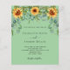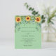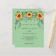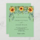 Um fundo de cor verde da casa da moeda decorado com girassóis, eucalipto verde. Personalize e adicione seus nomes e detalhes da festa. 1 folha = 1 convite impresso de borda a borda.