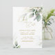 Eucalipto verde e dourado. Este design de alta qualidade é fácil de personalizar para combinar com as cores, estilos e tema do seu casamento. Para personalização adicional, clique no link "personalizar mais" e use nossa ferramenta de design para modificar este modelo. Se precisar de ajuda ou itens correspondentes, entre em contato conosco.