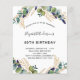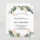 Para uma festa de aniversário de 40ª (ou qualquer idade). Um fundo branco decorado com verde de eucalipto e folhas de ouro. Personalize e adicione seus nomes e detalhes do casamento. Letras pretas e ouros coloridas.