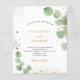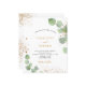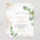 Um fundo branco decorado com verde de eucalipto e pó de ouro falso. Personalize e seu nome e detalhes da cerimônia. Letras pretas e ouros coloridas. Traseira: fundo branco com poeira brilhante ouro.