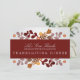 Uma linda faixa floral com flores, frutas e folhagens em cores rústicas, perfeita para qualquer celebração de outono. (Faixa floral do Vecteezy.com por onfocus). O cartão é fácil de personalizar com sua mensagem, fonte, cor da fonte, opções de forma de papel e escolha de seis tipos de papel.
