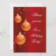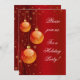 Convite de festa de férias com fundo vermelho escuro e ornamentos de ouro com espirais, fitas, flocos de neve e estrelas. Adicione facilmente seus próprios detalhes e faça convites para festas de festas.
