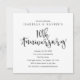 Este design apresenta as palavras "10º aniversário" em uma fonte manuscrita moderna em um fundo branco. Os campos de texto e a cor de fundo podem ser alterados, se desejado.
