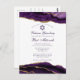 Um convite de cartão postal para cerimônia e festa de Bat Mitzvah sofisticado, decorado com ágata roxa e dourada. O nome da sua filha está escrito em linda caligrafia cursiva sob a Estrela de Davi. Um design moderno e atual para uma menina judia sofisticada que está sendo chamada ao Torá.