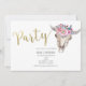 Convite de Festa Boho Caveira de Vaca Floral Dourada