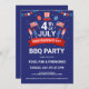 Fogos de artifício, bandeiras e balões de Estrelas e Faixas, convite de festa de churrasco, celebração do Dia da Independência.