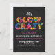 Um convite de festa divertido e colorido, perfeito para qualquer evento. Características salpicos e tipografia. Personalize o texto editável para a sua próxima celebração Glow.