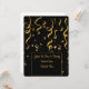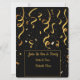 Modelo de convite de festa com confete dourado. Convite de festa de celebração com confete dourado. Personalize sua fonte, estilo, cores e imagens são redimensionáveis. Personalize seu convite de festa. Ótimo para Ano Novo, festa de aniversário ou aniversário de casamento. Simples e limpo em fundo preto. Nota: nenhum metal dourado será usado no design.