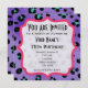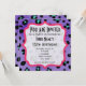 Um convite perfeito para um aniversário ou qualquer outra ocasião. Fundo com estampa de leopardo roxo em ambos os lados. A frente apresenta texto personalizável preto dentro de uma moldura de colchetes rosa.