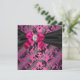 Convite de Festa Damask Preto e Rosa Quente Fúcsia