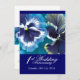 Convite de 1º aniversário de casamento floral. Belos pansies pintados de azul turquesa, a flor símbolo do primeiro aniversário. Personalize com os detalhes da sua festa. Arte original pintada em guache por Sarah Trett.
