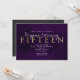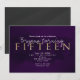 Convite de festa de 15 anos roxo, preto e dourado.