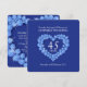 Convite de aniversário de casamento de safira de 45 anos. Efeito de belas pedras de safira em forma de coração em gráficos impressos. Convite de aniversário de casamento de safira de 45 anos personalizável com os detalhes da sua festa de casamento de safira. O aniversário de 45 anos é tradicionalmente associado às safiras e o coração simboliza o amor. Gráficos e design originais de Sarah Trett.