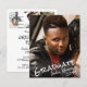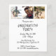 Um convite de formatura de festa de fotos moderno e econômico, impresso em papel leve de 4,5x5,6" em vez de papel cartão, apresentando tipografia casual à mão e escrita à mão com 4 fotos (1 na frente e 3 no verso), o título GRADUATE, o nome do formando e o ano de formatura como uma sobreposição na cor de sua escolha para se destacar na sua foto (mostrado em branco) na frente e os detalhes da festa de formatura, open house ou celebração de recepção no verso. ASSISTÊNCIA: Para obter ajuda com modificação de design/personalização, alteração de cor, transferência do design para outro produto ou se você gostaria de itens coordenados, entre em contato com o designer ANTES DE COMPRAR pelo Zazzle Chat ou makeitaboutyoustore@gmail.com.