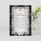 Convite para festa de 50º aniversário com borda de damasco preto e branco com acentos dourados e laço de cetim branco para , composição de imagem e ilustração para modelo elegante de casamento formal, aniversário ou festa de noivado. O texto é totalmente personalizável. Adicione suas informações ou altere completamente. Selecione uma fonte e cor diferentes. O modelo pode ser usado para qualquer ocasião especial. Basta alterar o texto para atender às suas necessidades. com acentos ornamentais. Esta é uma imagem impressa, o laço não é separado, faz parte da imagem digital.