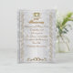 convite de festa de aniversário de 50 anos anjos vitorianos em fundo tipo cetim com impressões suaves de folhas de hera, detalhes em dourado. O texto é totalmente personalizável. Adicione suas informações ou altere completamente.