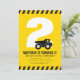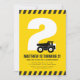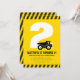 A emoção está aumentando! Prepare-se para uma celebração de construção! Este convite de aniversário infantil com tema de construtor preto e amarelo apresenta um caminhão basculante na frente da idade da criança. A idade e a cor do fundo podem ser personalizadas.