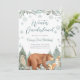 O design do convite pode ser para qualquer idade, todo o texto é editável. Personalize este convite de festa de aniversário com aquarela sonhadora. Apresenta animais da floresta, urso, esquilo, coelho, coruja, neve nas árvores, flocos de neve e folhagens. Perfeito para um tema de inverno e festa de primeiro aniversário.