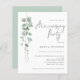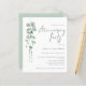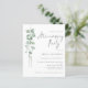 Convite de festas de Aniversário do Script Eucalyptus de Orçamento. Um alternativo de 4,5 pol x 5,6 pol com preço inferior. Disponível em um STOCK DE CARTÃO SEMI GLOSS 110 lb, que é a opção padrão (recomendada para convites), OU um STOCK DE PAPEL THINNER SATIN FINISH 80 lb (ideal para gabinetes). Estilo botânico minimalista, com verde-aquarela fluindo para o lado esquerdo e texto para a direita. Um script manuscrito para o Partido do Aniversário e o resto do texto que você pode personalizar facilmente.