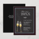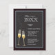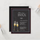 Toque o Ano Novo com este convite de festa clássico. Duas taças de champanhe brindam sobre um fundo de damasco preto com padrão de diamante emoldurado por uma borda preta grossa. Adicione qualquer informação extra no verso ou simplesmente exclua-a. Disponível em cores alternativas com produtos correspondentes.