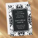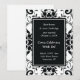 Convite de recepção de casamento com desenho damasco preto e branco. Se você já se casou e está organizando a celebração do casamento posteriormente, personalize este convite para o seu evento. Também serve como um anúncio de casamento se você teve uma cerimônia privada pequena ou um casamento em um destino e quer informar as pessoas. Texto totalmente editável, adicione suas próprias informações.