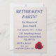 Cores brilhantes tornam este convite de festa de aposentadoria extra especial e atraente. Uma rosa vermelha profunda é a peça central.