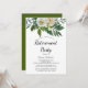 Dê boas-vindas aos convidados à sua nova casa com este elegante convite de festa de aposentadoria. Perfeito para uma reunião de primavera, apresenta um design floral atemporal com rosas, peônias e crisântemos suaves em marfim e branco, acentuados por delicadas flores de água-marinha azul pervinca e folhagem verde exuberante.