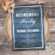 Um convite de festa de aposentadoria elegante pode ser personalizado com as informações do seu evento especial em um fundo de painéis de madeira rústica azul. Criado por Thisisnotme©