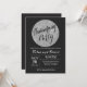 Cartão de Convite de Festa de Aquecimento Preto e Brilho Prata. Para personalização adicional, clique no botão "Personalize" e use nossa ferramenta de design para modificar este modelo.