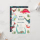 Um cartão de babyshower de dinossauro pintado à mão com dinossauros em uma selva pré-histórica. Arte original de Caroline Bonne Müller.