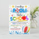 Convite de Festa na Piscina de Volta às Aulas - Adeus Piscina Olá Festa Escolar, Convite de Festa de Formatura Divertido e Criativo para celebrar o fim do verão!