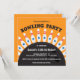 Convite de festa de aniversário com uma bola de boliche e uma fila de pinos de boliche. Texto do convite personalizável. Para pedidos personalizados ou ajuda com a personalização, use o link de contato da loja acima.