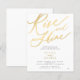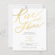 Modelo de convite de brunch pós-casamento elegante simples em dourado e branco com caligrafia romântica e negrito "rise and shine". ++++++++++++ Fácil de personalizar com seus detalhes! O convite é adequado para festas de despedida elegantes e casamentos em destino com estilo.