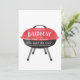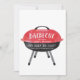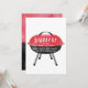 Convite divertido com uma churrasqueira com pintura de aquarela preta e vermelha, perfeito para festas de aniversário e celebrações de verão