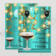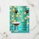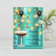 Convite de Festa de Aniversário Elegante de Balões Prateados e Pretos com Luzes de Café de Cocktail de Espresso Martini Fabuloso Azul Dourado. Para mulheres. Convites para Todas as Ocasiaões.