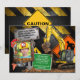 Este convite exclusivo apresenta uma escavadeira realista brincando na lama cercada por ferramentas de trabalhador. Personalize com os detalhes da sua festa em uma placa de rua. Um modelo inclui um capacete para a foto do seu filho e um segundo modelo sem o capacete.