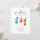 Convite divertido de festa de coquetéis e conversa para um evento de destino com ilustração de bebidas de coquetel tropicais coloridas.
