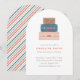 Uma pilha de malas coloridas está no topo deste convite de festa de despedida caprichoso. Abaixo da ilustração da bagagem há espaço para o nome do convidado de honra e os detalhes da festa. O verso do cartão apresenta um padrão de listras diagonais coordenadas. Este convite é perfeito para quem está prestes a embarcar em uma nova aventura!