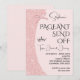 Estilize seu convite de festa de despedida de concurso com brilho rosa e um lindo laço no topo! Este convite de festa de despedida é ideal para concursos nacionais, ou até mesmo para uma festa de despedida de baile. Personalize o texto e adicione os detalhes do seu evento para convites bonitos disponíveis com várias opções de formas e acabamentos de papel, ou como um download para enviar aos convidados instantaneamente!