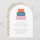 Uma pilha de malas coloridas está no topo deste convite de festa de despedida caprichoso. Abaixo da ilustração da bagagem há espaço para o nome do convidado de honra e os detalhes da festa. O verso do cartão apresenta um padrão de listras diagonais coordenadas. Este convite é perfeito para qualquer pessoa que está prestes a embarcar em uma nova aventura!