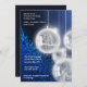 Os ornamentos sombrios penduram em frente a um fundo gráfico preto e azul real desusado. Este é um design perfeito para uma festa de troca de ornamentos. Os hóspedes estarão certamente entusiasmados com este próximo evento.