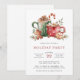 Este convite de Festa de Fim de Ano adorável e festivo apresenta biscoitos pintados à mão e canecas de cacau com verdejante invernal linda.
