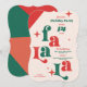 Prepare-se para decorar os salões e se divertir com este convite de festa de fim de ano moderno e retrô combinado. Tipografia Fa La la grande e ousada em vermelho e verde. Personalize todo o texto pequeno neste cartão para a sua festa de fim de ano. Perfeito para uma festa de Natal, festa de troca de presentes de fim de ano ou convite de festa de fim de ano empresarial.