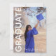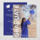 Celebre um momento marcante com este convite de festa de formatura moderno e elegante. Com um formando alegre num clássico boné e toga azuis, este design capta a emoção e o orgulho da conquista. O texto vertical e ousado “GRADUATE” adiciona um toque contemporâneo, enquanto o layout limpo destaca o nome do formando e o ano da turma para um toque personalizado. Perfeito para anunciar uma celebração da turma de 2026, este convite combina elegância com um ambiente divertido e ao ar livre – ideal para festas, casas abertas ou encontros no quintal.